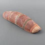 Beschilderde houten coolamon, Australië, circa 11 × 12 × 50 cm