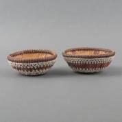 Twee Balinese kralenmandjes, grootste 6 × 15 cm