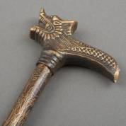 Chinese messing wandelstok met greep in de vorm van een drakenkop, en decor van Shou Lao, herten en vele karakters, lengte 84,5 cm