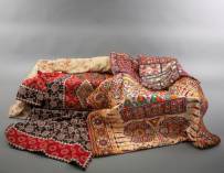 Verzameling katoenen en batik kledingstukken, sjaals, wandkleden, etc., versierd met spiegeltjes, kralen, steentjes, en lovertjes, Gujarat, India, 20e eeuw, 164 × 84 cm