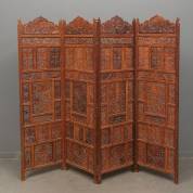 Vierslags opengewerkt teakhouten kamerscherm met bladdecor, India, 20e eeuw, één paneel 170 × 50 cm