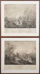 Twee gravures: 'De overwinning voor Leuven, op den 12den Augustus 1831' en 'De overwinning voor Hasselt, op den 8sten Augustus 1831', door Johannes Jelgerhuis, gesneden door Hendrik Willem Hoogkamer, 19e eeuw -scheurtjes en waterschade-, 42 × 47 cm
