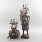 Twee Nigeriaanse bronzen beelden in de stijl van de beelden uit Benin, 75 en 47 cm hoog
