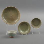 Vier celadon kommen, grootste Ø 19 cm