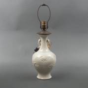 Crèmewitte aardewerk Chinoiserie lampvoet met kostbaarhedendecor in reliëf -craquelé en oppervlaktebarsten-, 31 × Ø 16 cm exclusief fitting