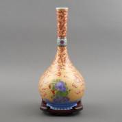 Chinees porseleinen vaas met polychroom transferdecor van vleermuizen, modern, op houten basement, hoogte inclusief basement 45 cm