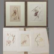 Maria Hofker-Rueter (1902-1999), vijf aquarellen van druiven, waarvan drie in map, alle r.o. gesigneerd en gedateerd -bruine vlekjes op één werk-, 26 × 17 cm