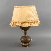 Tafellamp met opengewerkte messing voet, 60 × Ø 40 cm inclusief gele kap