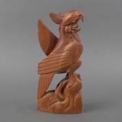 Indonesisch houten beeld van een kaketoe, met gegraveerd metalen plaatje aan de zijkant: 'Kenang 2an P.P./B.P.K. Malang 1959' -chipjes-, hoogte 37 cm