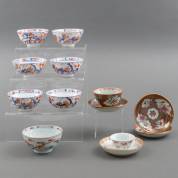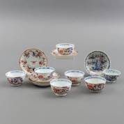 Zes Chinees porseleinen Imari kommetjes en vier niet bijpassende Chinees porseleinen Imari schoteltjes, daarbij: Chinees porseleinen kommetje en schoteltje met Amsterdams bont decor, alle 18e eeuw -defecten-, 4 × Ø 11,5 cm