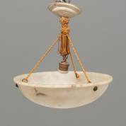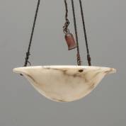 Albasten hanglamp -scheur in kap gerepareerd met touw-, 35 × Ø 35 cm