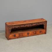 Indiase houten kastje, het open deel met gestoken randje, onder met drie laatjes, 20e eeuw -lichte beschadigingen-, 32 × 89 × 19 cm