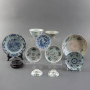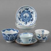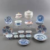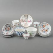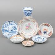 Divers porselein, voornamelijk Chinees, waaronder: paar schoteltjes, en een kommetje, Kangxi gemerkt -defecten-, 19e eeuw, daarbij: tien schoteltjes, negen kommetjes, en een pot, afmetingen grootste: 9 × Ø 11,5 cm.