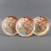 Drie Japanse Satsuma schotels met decor van fazanten, gemerkt Manpei, Kobe, 20e eeuw, Ø 31 cm