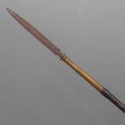 Speer met messing beslag en smeedijzeren punt, Indonesië, 20e eeuw -gelijmde breuk in schacht-, lengte 248 cm