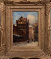 Hollandse School: straatgezicht, in de stijl van P.G. Vertin, olieverf op doek, niet gesigneerd, 19e eeuw -vergeeld-, 26 × 19 cm