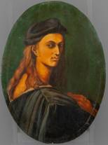Italiaanse School: kopie van Raphaëls portret van Bindo Altoviti uit 1515, 20e eeuw, olieverf op paneel, niet gesigneerd -beschadiging van ovale lijst in de marges-, 85 × 61,5 cm