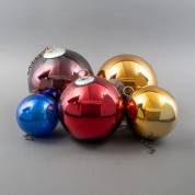 Vijf glazen heksenballen in diverse formaten, grootste circa Ø 20 cm