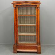 Mahonie vitrinekast met timpaankap, twee zuilen en lade, biedermeier, Oostenrijk -gebruikssporen en defecten, twee delen van de achterwand ontbreken, geen sleutel-, 175 × 97,5 × 52 cm