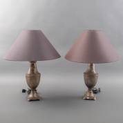 Paar balustervormige metalen lampvoeten met donkergrijze kappen, eind 20e eeuw, totale maat 61 × Ø 49 cm
