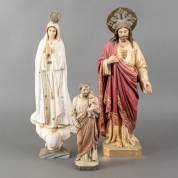 Drie gipsen heiligenbeelden: Madonna, Heilig Hart, en Sint Jozef met Kind, 20e eeuw, Heilig Hart 56 cm