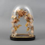 Bruidsboog met bloemen van textiel onder glazen stolp, België -stof verkleurd-, 40 × 28 cm
