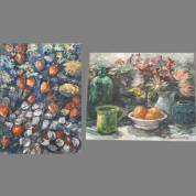 Pieter Middelhoek (1930-2004), twee werken: stilleven met boeket, fles en fruitschaal, aquarel op papier, r.o. gesigneerd, 49 × 59 cm, en bloemstilleven, aquarel op papier, r.o. gesigneerd, 59 × 42 cm
