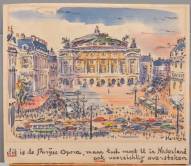 Gerard Hordijk (1899-1958), de opera van Parijs, aquarel op papier, r.o. gesigneerd en met onderschrift 'dit is de Parijse Opera, maar toch moet U in Nederland ook voorzichtig oversteken' -ietwat verkleurd bij dagraam-, 28 × 33 cm