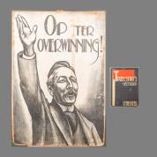 Affiche: 'Op ter overwinning'. Verkiezingsaffiche van de SDAP met afbeelding van een strijdbare Troelstra, 1925. Litho, op karton geplakt, -(water)vlekken en andere defecten-, 109 × 72 cm, En: 'Troelstra's heengaan'. Stemmen uit eigen en anderen kring. Gebundeld door Piet Bakker, 1930. 80 pp.