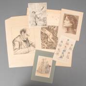 Divers grafiek, waaronder: Albert Decaris, Adam, Eva en de slang in het paradijs; Jan Veth, portret van Mr. A. Kerkdijk -scheurtjes in de marge-; en twee prenten uit Journal des Demoiselles, beide 1843 -vlekjes-, afmetingen litho Jan Veth 25 × 20 cm