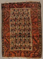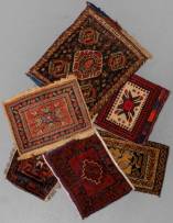 Zes tapijtjes, waaronder Afshar en Koerdisch, grootste 57 × 51 cm