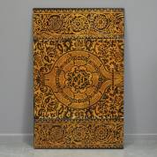 Goudleerfragment op multiplex plaat, moderne replica van Spaans 16e-eeuws origineel, besteld door Christoffel Plantijn omstreeks 1580 voor zijn huis in Antwerpen, 104 × 66 cm