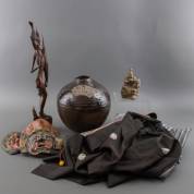 Diverse Aziatica, waaronder: voorraadpot, beelden, maskers en gewaden