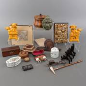 Divers kleingoed, waaronder: Aziatica, doosjes, en landkaartje