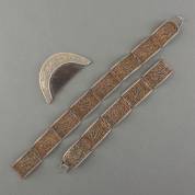 Ingelegde Oosterse ceintuur met floraal decor, en een BWZG Oosterse sierkam met floraal decor -enkele scharnierpin van de ceintuur mist-