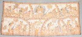 Schildering op doek: figuren en mythische wezens in vakverdeling, Indonesië, 87 × 201 cm