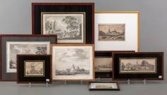 Acht ingelijste etsen: verschillende stads- en dorpsgezichten waaronder: 'T'Dorp Loenen', 'De Derre Poort te Hattum', en Theodoor Goedvriend (1879-1969), dorpsgezicht, r.o. gesigneerd in potlood, 11,5 × 18 cm