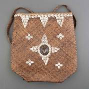 Gevlochten rotan rugtas met schelpjes, 39 × 37 cm