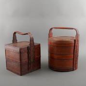 Twee Chinese bruidsmanden van gevlochten riet en bamboe, beide 19e eeuw, hoogte 40 cm