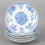Vijf Chinees porseleinen bordjes met blauw-wit bloemdecor, Qianlong -defecten-, Ø 18 cm