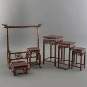 Kleine Chinese rozenhouten mimiset, standaard voor kwasten, en twee basementen, 20e eeuw -kleine defecten-, hoogte standaard 46 cm