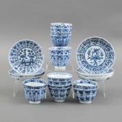 Veertien Chinees porseleinen kommetjes en zes schotels met verschillende blauw-witte peterseliedecors, een deel gemerkt met artemisiablad, een ander deel Kangxi gemerkt, alle 19e eeuw -defecten-, Ø 13 cm