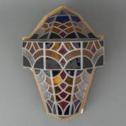 Glas-in-lood wandlantaarn, hoogst waarschijnlijk gemaakt door Chris Lanooy, art deco, 47 × 34 × 20 cm, herkomst: nalatenschap van Chris Lanooy, geveild vanuit zijn eigen huis aan de Heerderweg te Epe op donderdag 16 september 1948, en daar gekocht door Willem Robert Tutein Nolthenius (1893-1976) -enkele gebarsten ruitjes-
