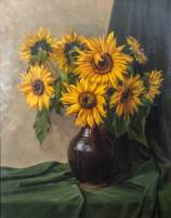 Cornelis Booij (1885-1965), stilleven met zonnebloemen, olieverf op doek, r.o. gesigneerd, 95 × 75 cm
