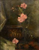 Henriëtte Johanna van Voorthuijsen-van Hove (1861-1918), stilleven met bloem in glas, olieverf op doek, r.o. gesigneerd -gedoubleerd-, 58 × 44,5 cm