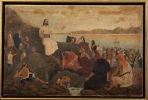 Schilderij: de Bergrede, geïnspireerd door een werk van Robert Leinweber, olieverf op doek, niet gesigneerd -sterk vergeeld-, 38 × 59 cm