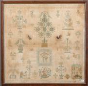 Merklap, gemonogrammeerd TP en gedateerd 1815 -vergeeld, vlekjes-, 50 × 50 cm