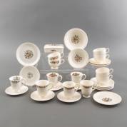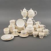 Creamware thee-/koffieserviesgedeelte, model Edme, uitvoering Wedgwood, bestaande uit: twee theepotten, grote koffiepot, kleine koffiepot -miniem schilfertje van tuit-, zes hoge kop-en-schotels, zes grote kop-en-schotels, en elf kleinere koppen met twaalf schotels