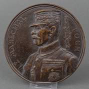 Ronde bronzen reliëfplaquette met portret van 'Le marechal Foch', Ø 16 cm