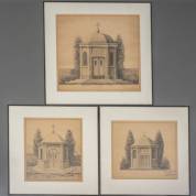 Drie tekeningen: de rustplaats van de familie Jacques Urlus, houtskool op papier, twee r.o. gesigneerd J. L[?]den, één gemonogrammeerd J.Ss., twee gedateerd '35, 19e eeuw, afmetingen grootste 45 × 49 cm